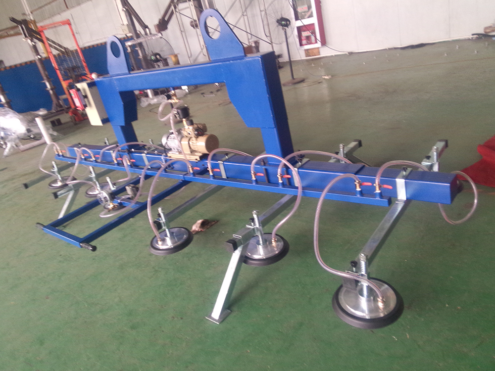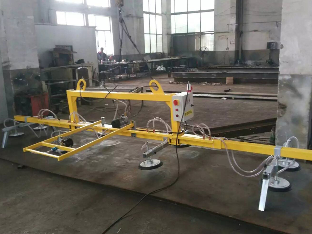 A vacuum suction lifter is a device that uses the principle of vacuum adsorption to achieve material handling, widely applied in the industrial field. Its core components consist of a vacuum pump, suction cups, vacuum pipelines, and a control system. By using the vacuum pump to extract the air between the suction cups and the object's surface, a negative pressure adsorption force is formed, enabling stable gripping of workpieces with flat surfaces such as glass, metal plates, and stone materials. It features high efficiency, safety, and non-destructiveness. It can quickly adsorb without traditional fixtures, reducing material damage. It is easy to operate, with lifting and moving controlled by a handle or remote control, reducing manual labor intensity. The adsorption force is stable, equipped with a vacuum monitoring system to ensure safety and reliability during the handling process.